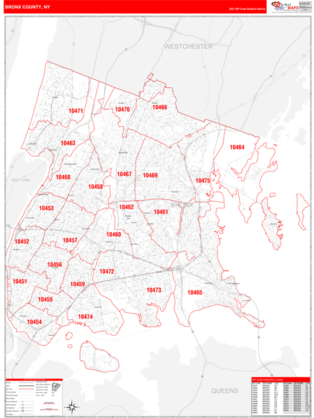 Bronx County, NY 5 Digit Zip Code Maps Red Line