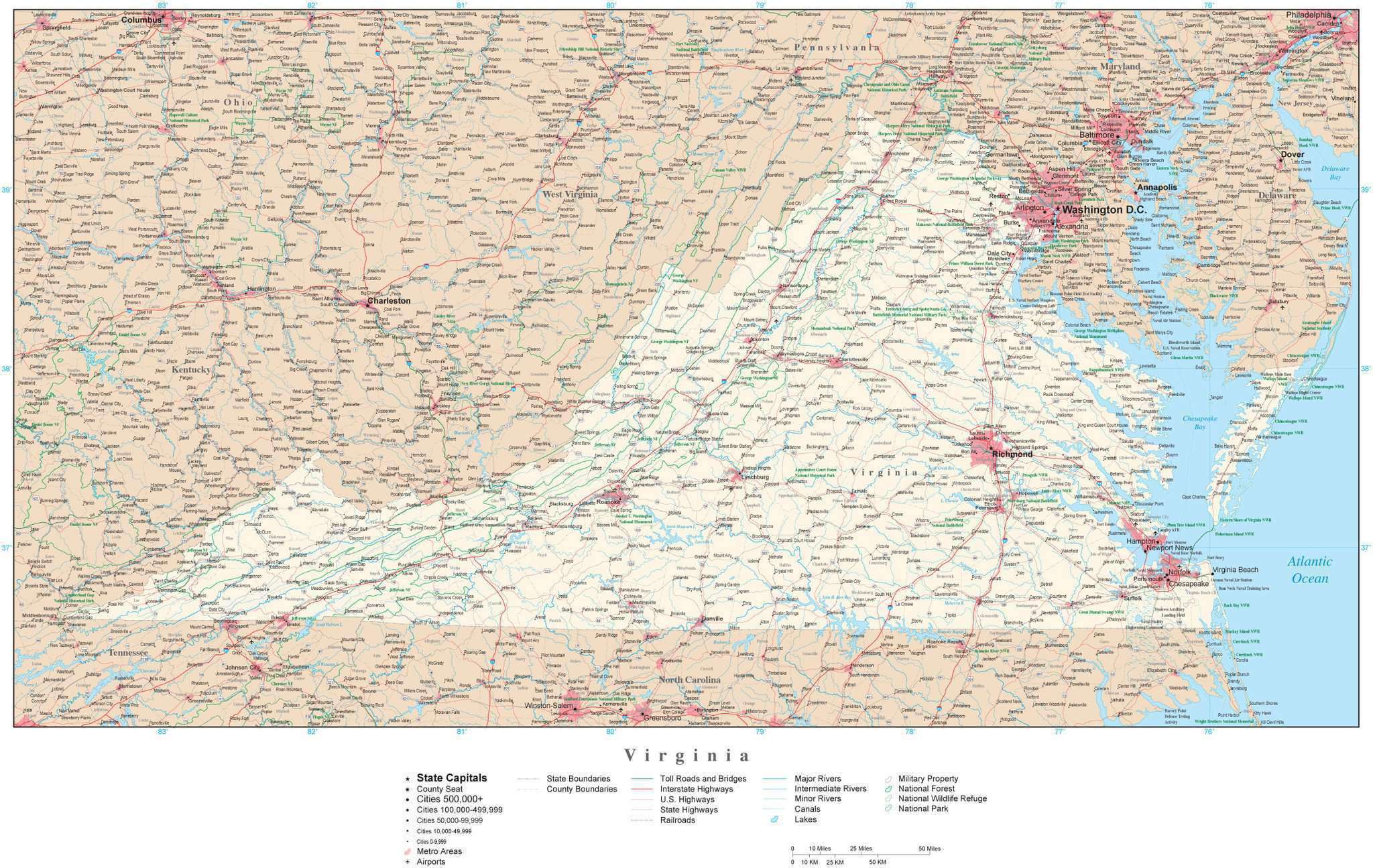 Detailed Map Of Virginia Usa