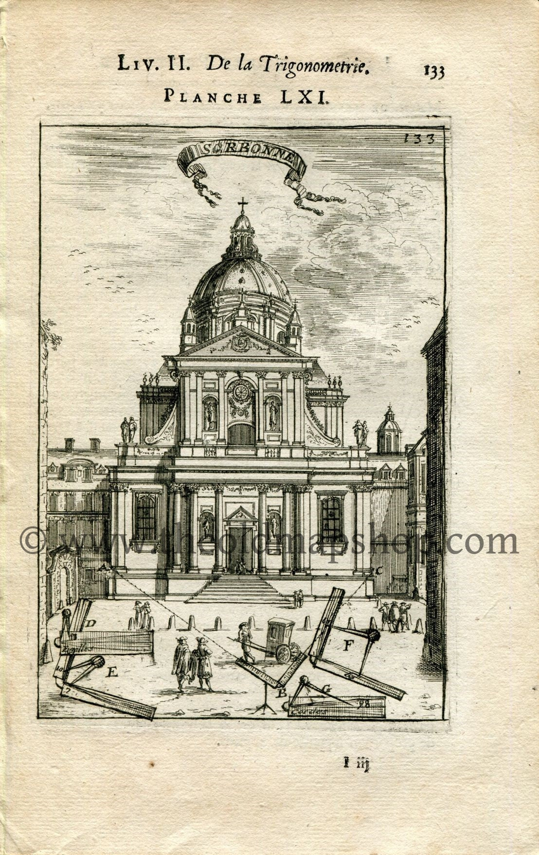 1702 Manesson Mallet Antique Print, Engraving Sorbonne