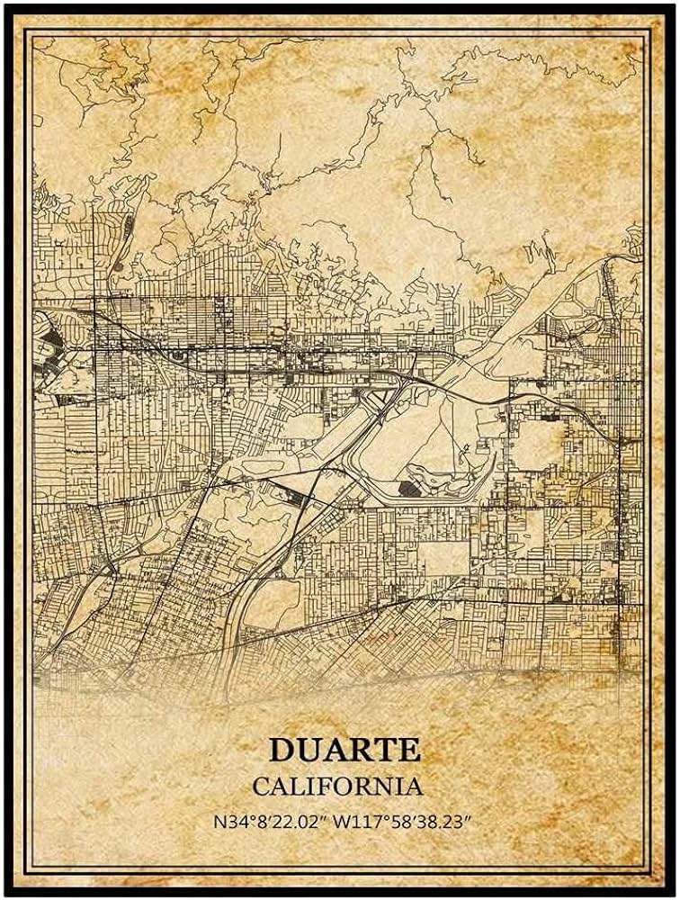 TANOKCRS Duarte California USA America Vintage Map Poster Artwork