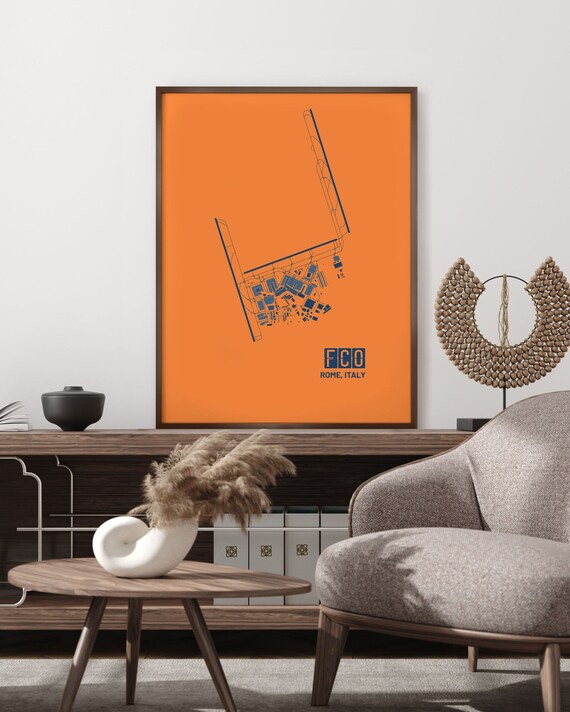 Rome Airport Poster Map Rome FCO Airport Print Map Wall Art Home